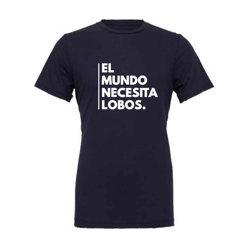 Raise awareness for wolves in style with our "El Mundo Necesita Lobos" T-shirt! This BELLA+CANVAS 100% cotton crew neck t-shirt has with our "El Mundo Necesita Lobos" graphic on the front, and a small white WCC logo on back.