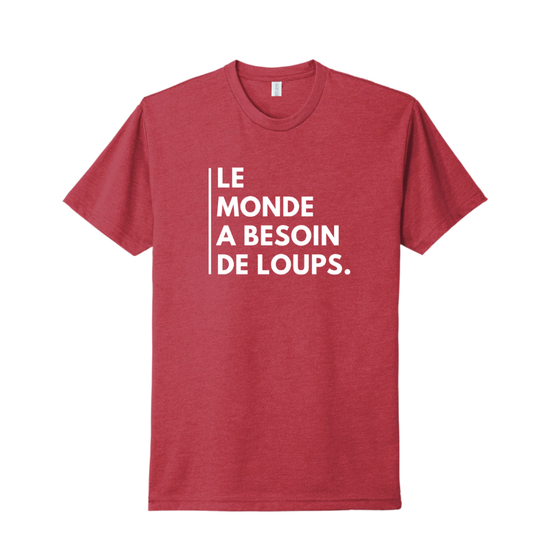 Raise awareness for wolves in style with our "Le Monde A Besoin De Loups" T-shirt! This BELLA+CANVAS 100% cotton crew neck t-shirt has with our "Le Monde A Besoin De Loups" graphic on the front, and a small white WCC logo on back.