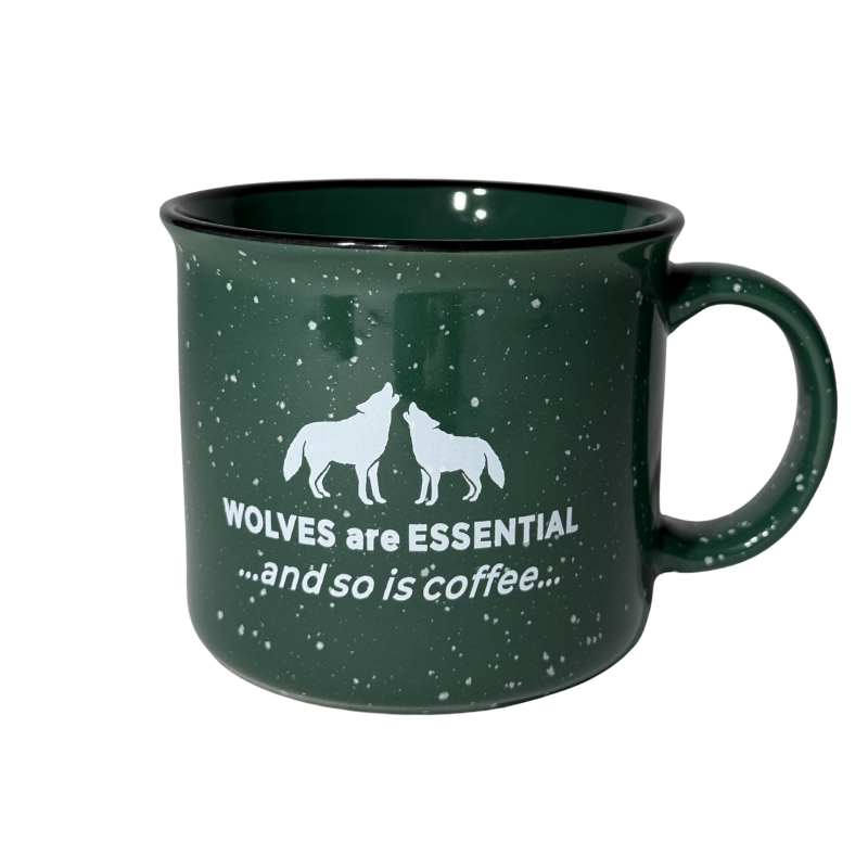 The slogan says it all! Drink your coffee (or tea) in style while showing your support for the Wolf Conservation Center. 15 oz stoneware mug.