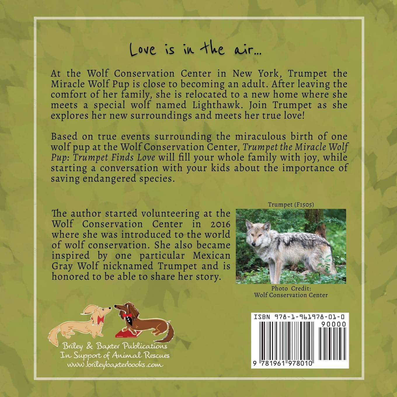 Based on true events surrounding the miraculous birth of one wolf pup at the center, Trumpet the Miracle Wolf Pup Finds Love is a heartwarming story that will fill your whole family with joy, while starting a conversation with your kids about the importance of saving endangered species. This book also highlights the amazing work pilots do to help endangered species.